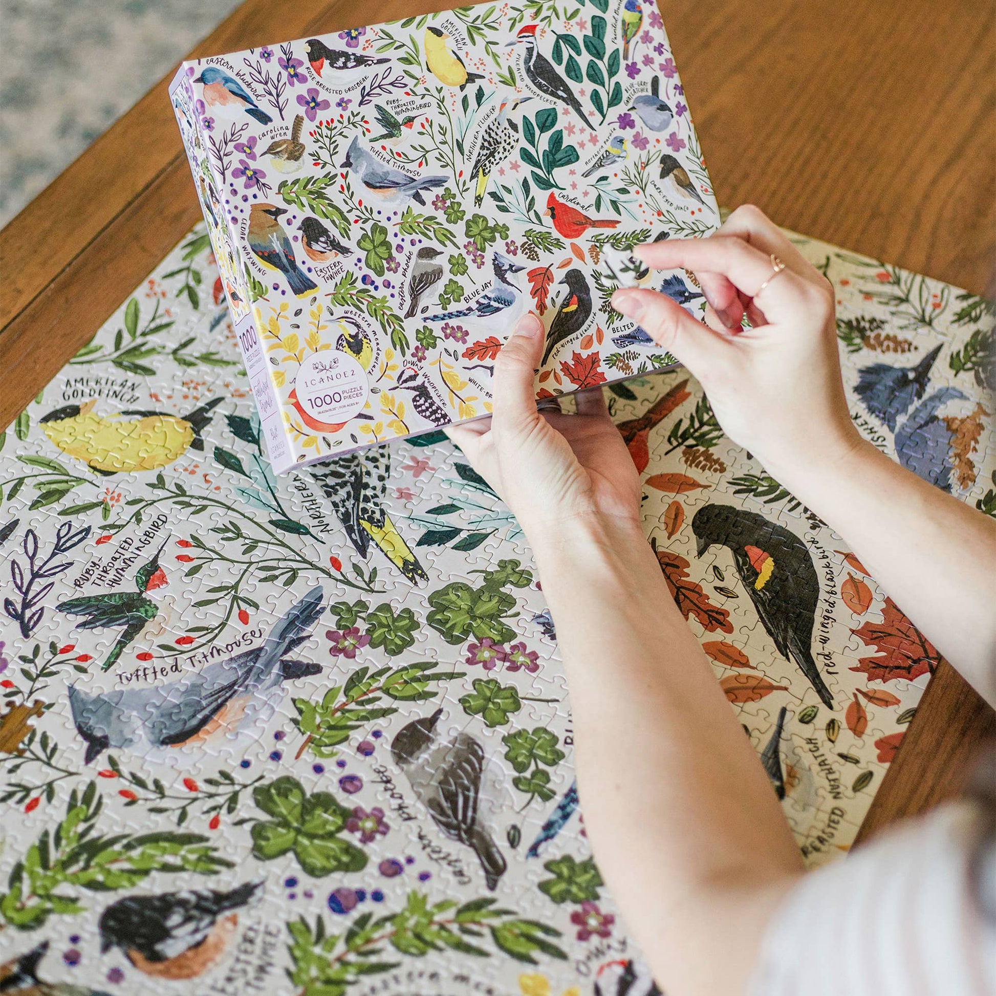 Delight the bird enthusiast in your life with our 1,000-piece Birds Puzzle—a thoughtful gift for Mother’s Day, Father’s Day, or any nature lover. Featuring a vibrant collection of hand-painted species—including the blue jay, goldfinch, cardinal, chickadee, eastern bluebird (our state bird!), hummingbird, wren, woodpeckers, and more—this puzzle is both beautiful and engaging. Each bird’s name is hand-lettered for an added educational touch, making it an enjoyable activity for both kids and adults.